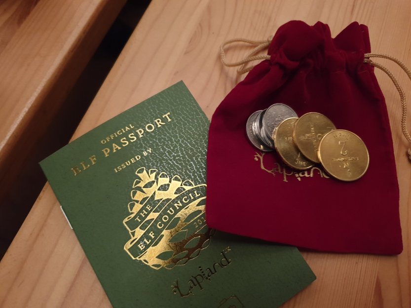 We sprinkled the magic dust on our boots as we entered the Enchanted Forest in preparation for our fairytale excursion, any excuse on my part for some extra glitter in our lives, and after checking in for our 11am departure Little Miss was issued her Elf Passport and mummy bought some jingles, of course all major debit and credit cards are also accepted in Lapland UK.