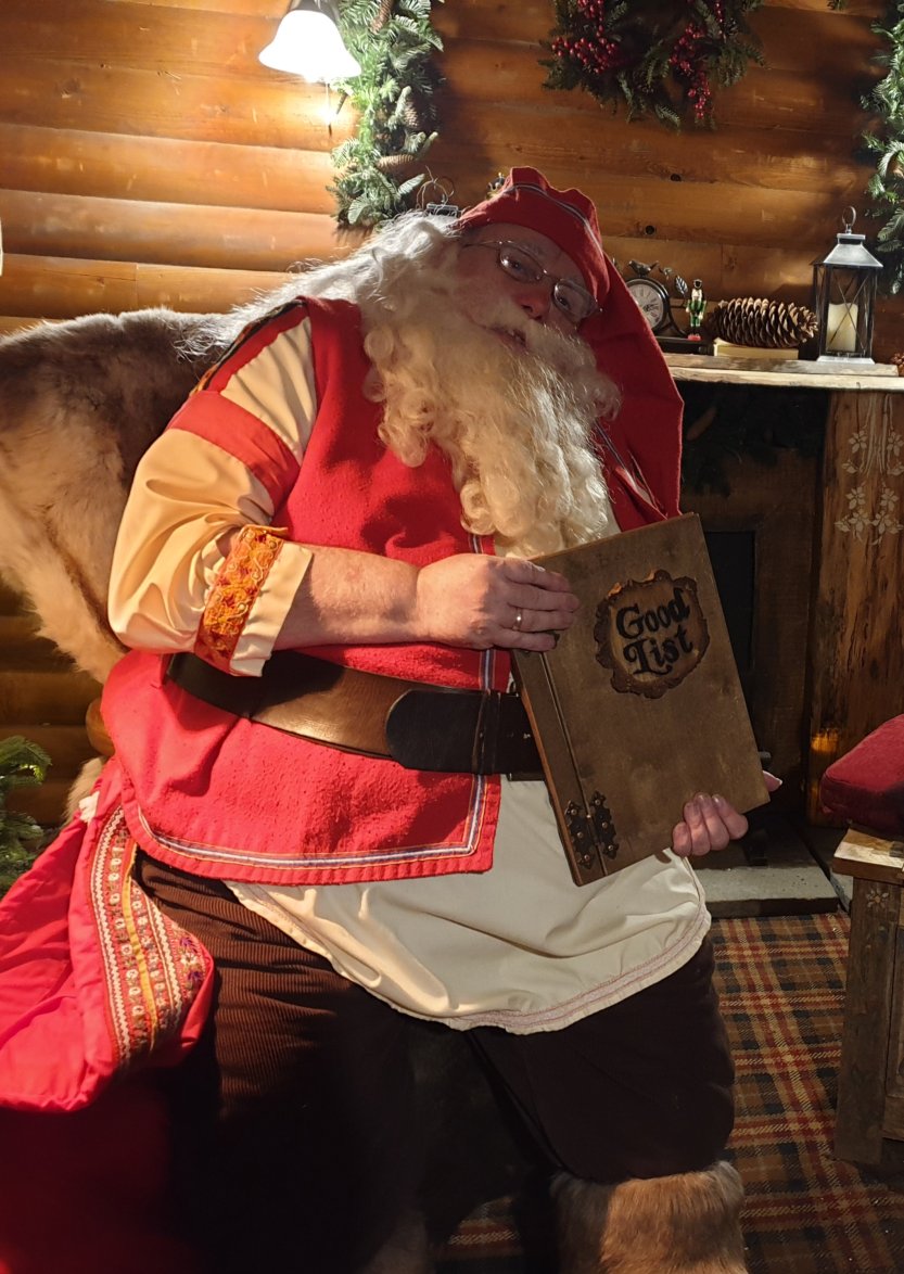 Of course a trip to Lapland would not be complete without meeting the big man in red, so after some food and Jingle (and mummy’s card) spending we follow our elf through a snow covered tree lined path to meet Father Christmas and see if Little Miss is on his good list.