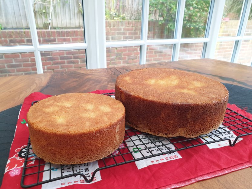 Thank goodness I did my research and found out Victoria sponge is not a good option for tier cakes and Madeira is the cake of choice. With only gluten free flour in the house I never know how recipes will turn out, so I took my chances on a Madeira cake recipe I found via a Google search. Worried it would lack flavour I added the zest and juice of 1 lemon to the 9″ and zest and juice of about half a lemon to the 6″ mixture, it seems luck was on my side as the cakes rose to the occasion and looked fine.