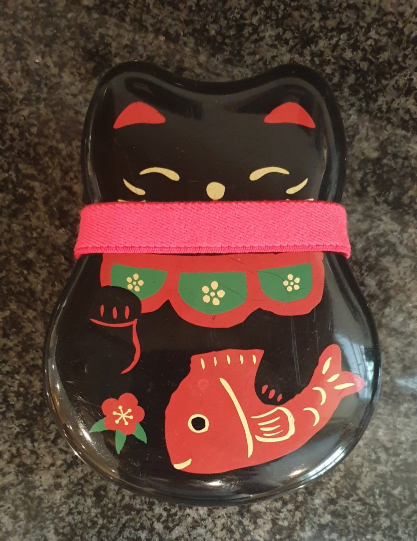 In Japan the lunch boxes vary in shape and size and of course design options just like in the UK, but with my OCD nature I like how they have separate areas and accessories to organise your lunch. Before leaving Tokyo we acquired a few bento boxes and gadgets to make novelty onigiri, rice balls, but as I’m usually rushing to make both breakfast and lunch while having a cup of tea the latter are not used so often. One of my favourite lunch boxes is the cat that was given as a gift.