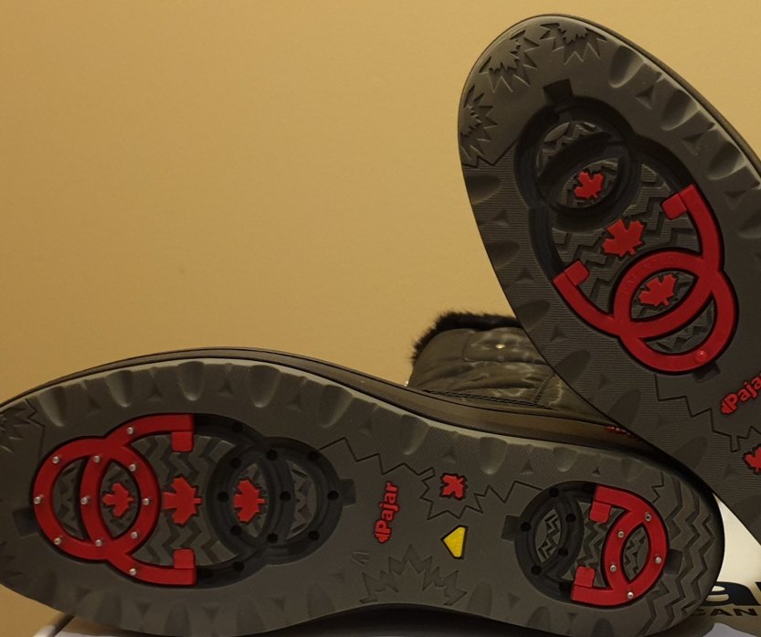 After this morning’s dog walk and losing my footing on icy patches a couple of times I had visions of Mizu pulling me over if he bolted unexpectedly, so when shopping for snow boots today I was sold on Pajar Ice-Gripper soles. Of course I did the usual shopping routine and looked around a few other stores before going back to the first place and invested in some Pajar Louisa boots…