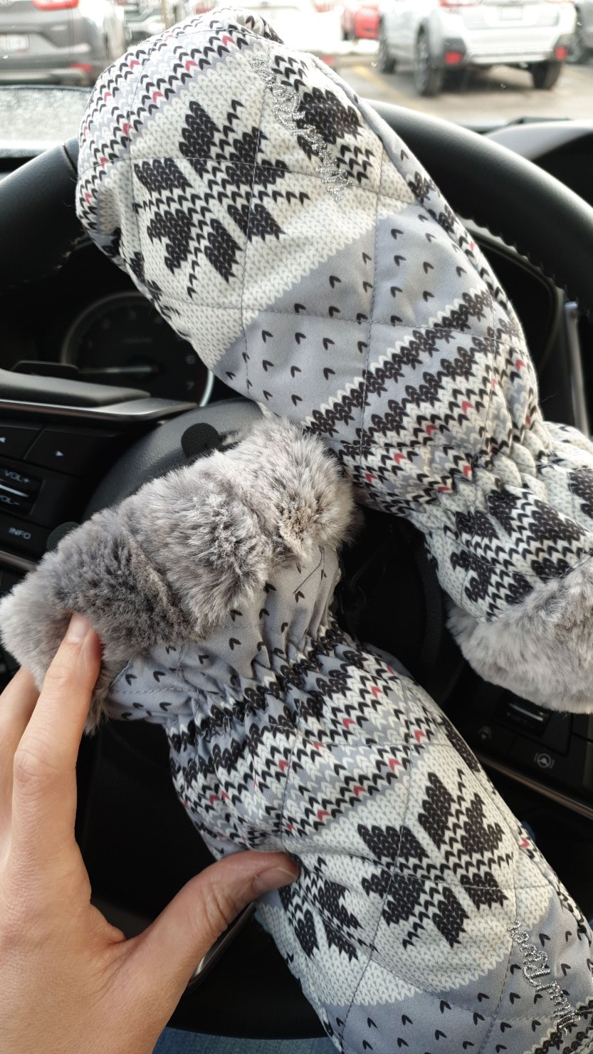 I would’ve chosen black to go with everything else I own but Little Miss chose these for me, so guess I just need a knitted jumper with the same wintery design to be fully winterised.