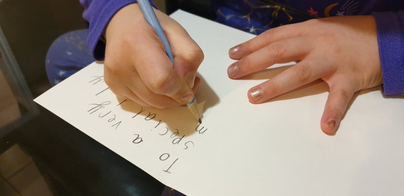 For those that follow my blog you’ll know Little Miss makes Christmas cards for family and she chose to make an extra one for the lady this year.