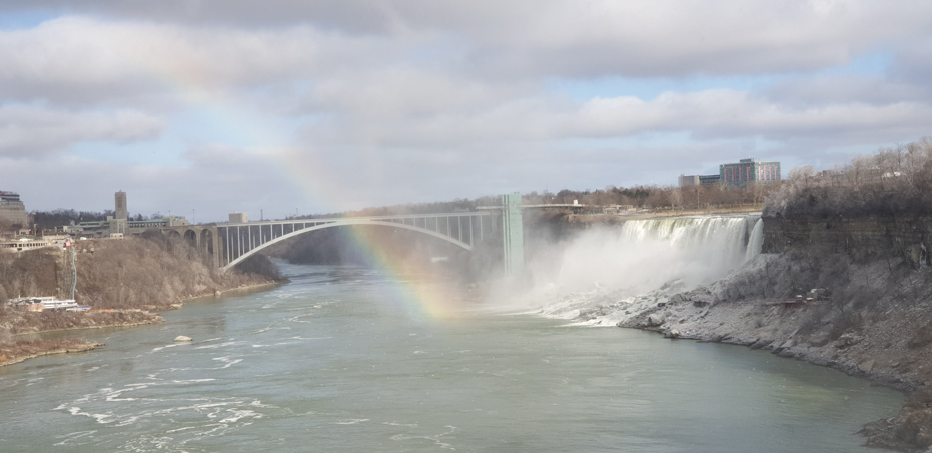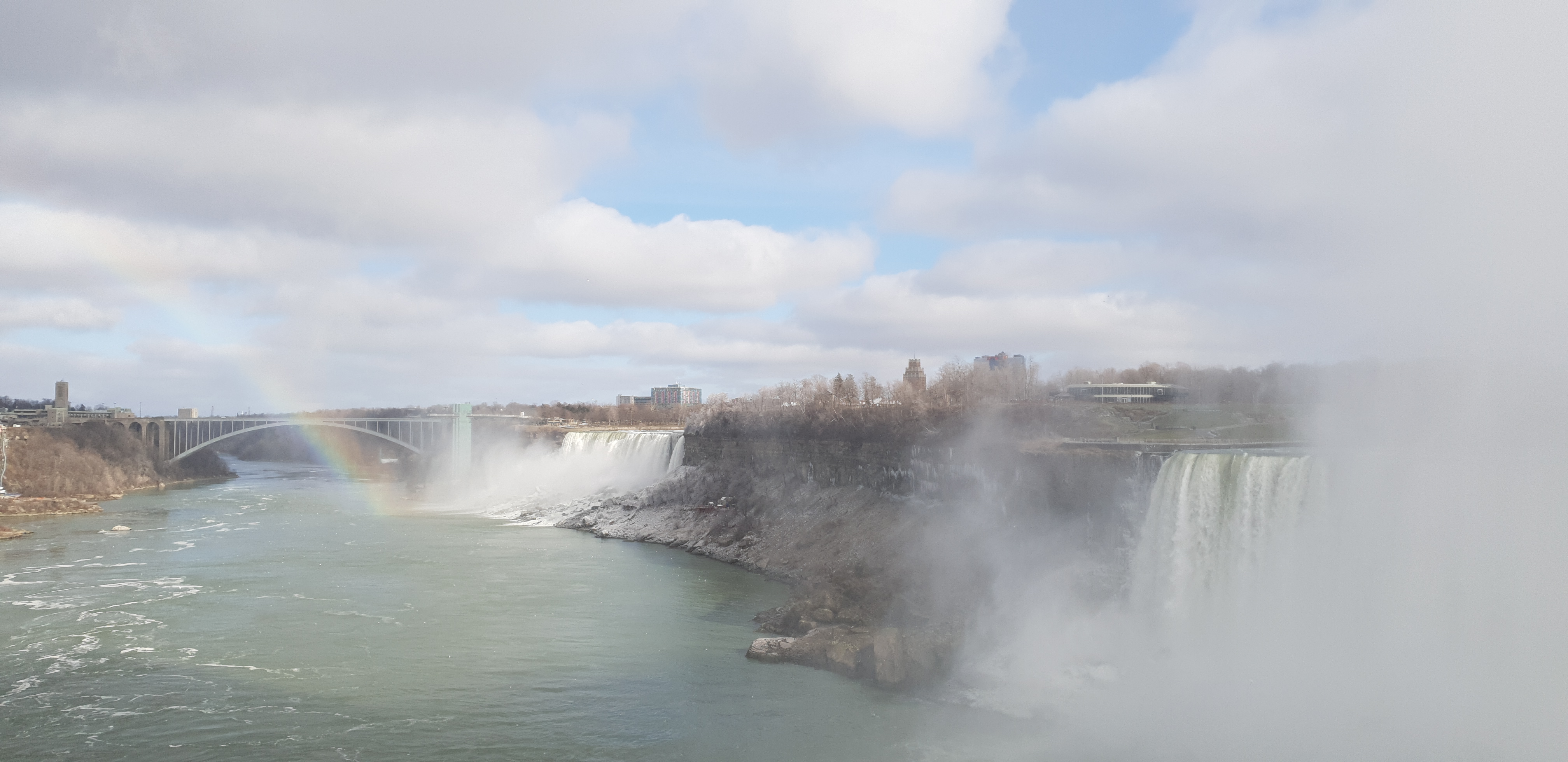 Trying to take photos with mittens on is impossible, so my fingers were soon feeling the cold and the thundering flow of water was making me think it was time to go into the visitor centre to use the bathroom and get a coffee to warm up. Filled with caffeine and with feeling in my fingers again we all ventured out for a wander and were thrilled to see a rainbow appear as we took in the wonder of the Falls.