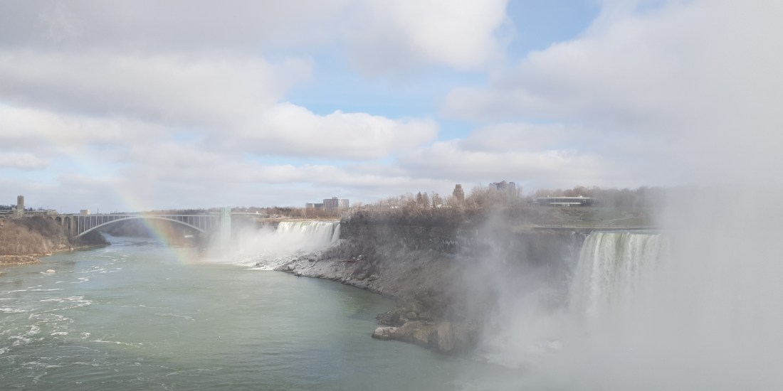 Last Friday after drop off and a dog park visit my parents and aunt were ready and waiting for a trip further around Lake Ontario to Niagara Falls. We drove through a couple of light snow flurries and as we weren’t travelling with our passports or ESTAs ensured we followed the signs to stay on the right side of the border! As google maps navigated us to the parking lot I was disappointed to be driving through Canada’s equivalent to the tacky part of a British seaside resort but once we had paid our $15, wrapped up for the -9°c temperatures outside of the car and walked towards the visitor centre I was happy to hear and see the Falls in their natural beauty…