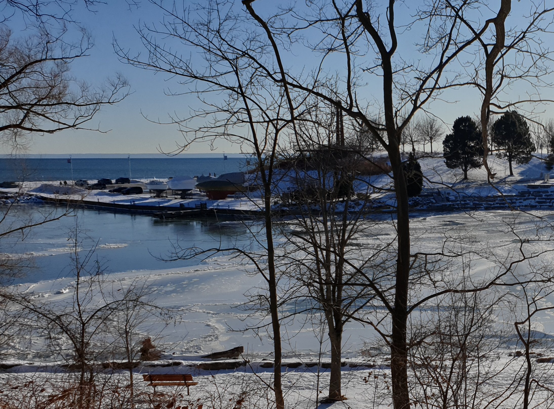 Snow days are still a bit of a novelty for us and I love how freshly fallen snow changes the landscape and streets around us. After a drive into downtown Toronto on Sunday, I wanted to show my family the older part of our town down by the lake. Driving slowly down to the park on the icy side roads we noticed the signs on the older properties, The Shipbuilders house, a Captain’s house, the old post office and the bank, unfortunately the museum is closed on Monday’s but with the sun shining and blue skies the views over Lake Ontario and by the creek were very pretty.