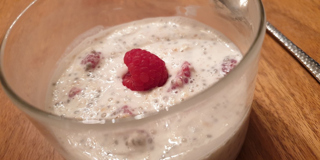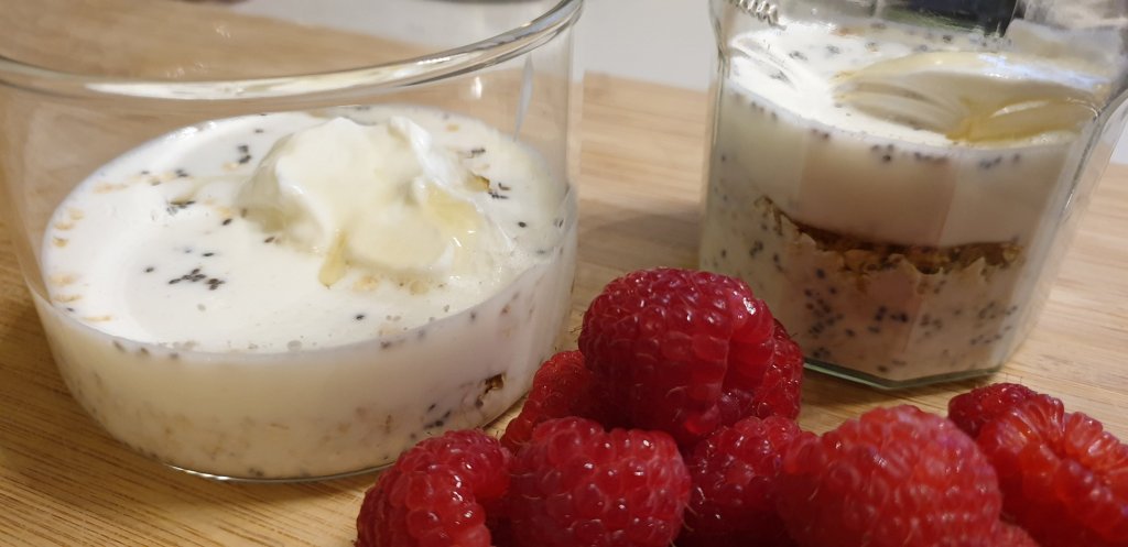 After consulting Prof. Google on chia seed recipes when Little Miss was a toddler I found one for overnight oatmeal and it has become a firm favourite of hers, even though we have cereal in the house and porridge oats ready to warm her up on cold mornings like today it is her go-to. I am happy though as it is a quick, easy breakfast that I know is full of goodness. I just have to remember to make a couple to keep in the fridge as it is not a good start to the day if I have forgotten!