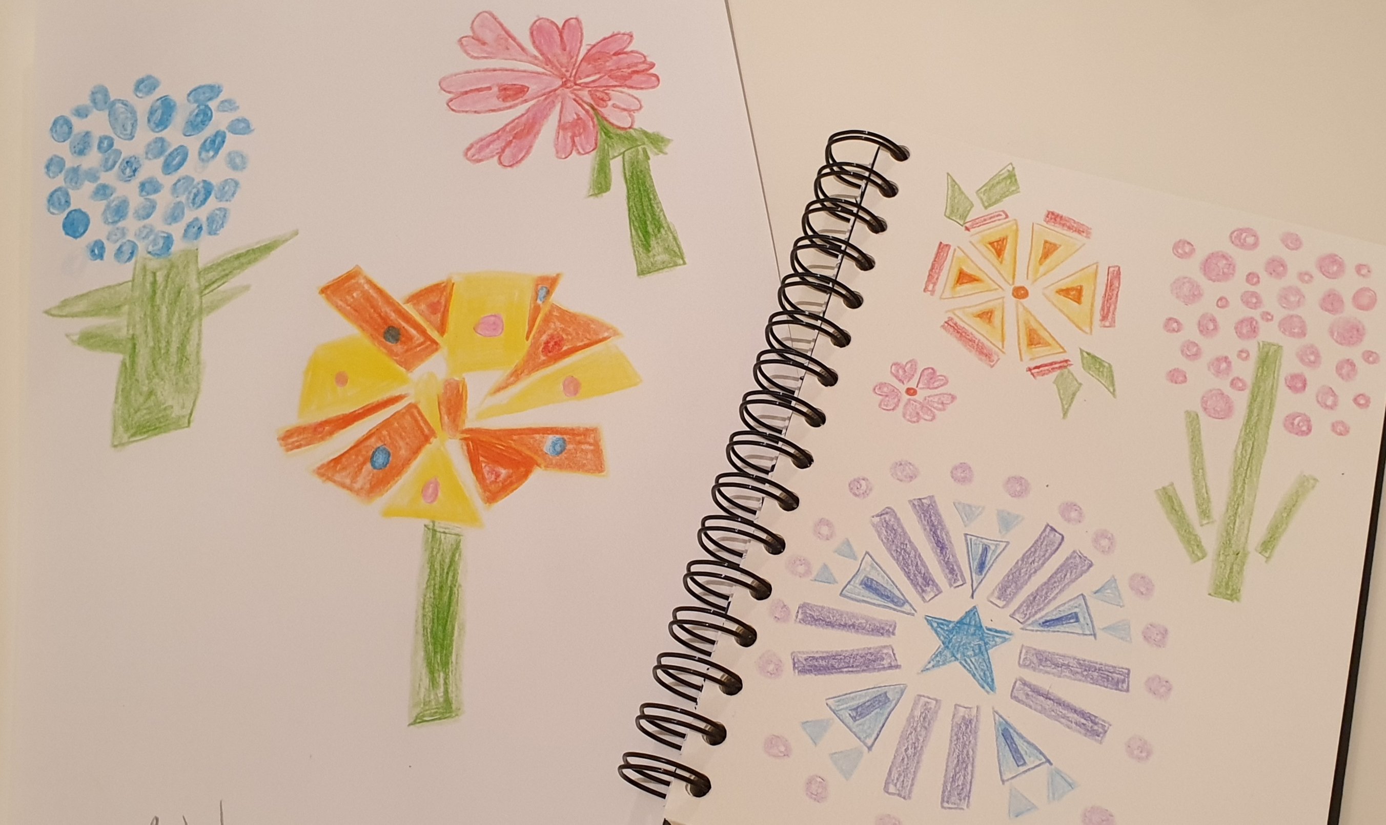 I have been indulging myself in joining Little Miss with the art lessons set by her teacher and doing my own doodles when enjoying a well deserved G&T in the garden after ‘work’.