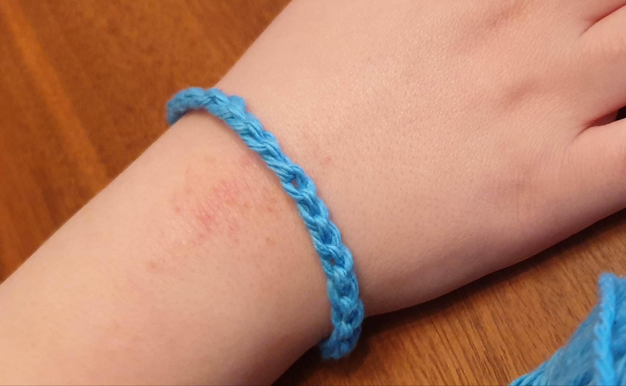 Well Little Miss lost her patience with learning how to tie a slip knot on the kid’s beginner lesson we chose to watch and once I got to grips with the chain stitch I managed to make a friendship bracelet, a simple first project for children…baby steps! Little Miss liked the bracelet though and was determined to try again, another day, so let’s see if I continue this new hobby alone or with my daughter.