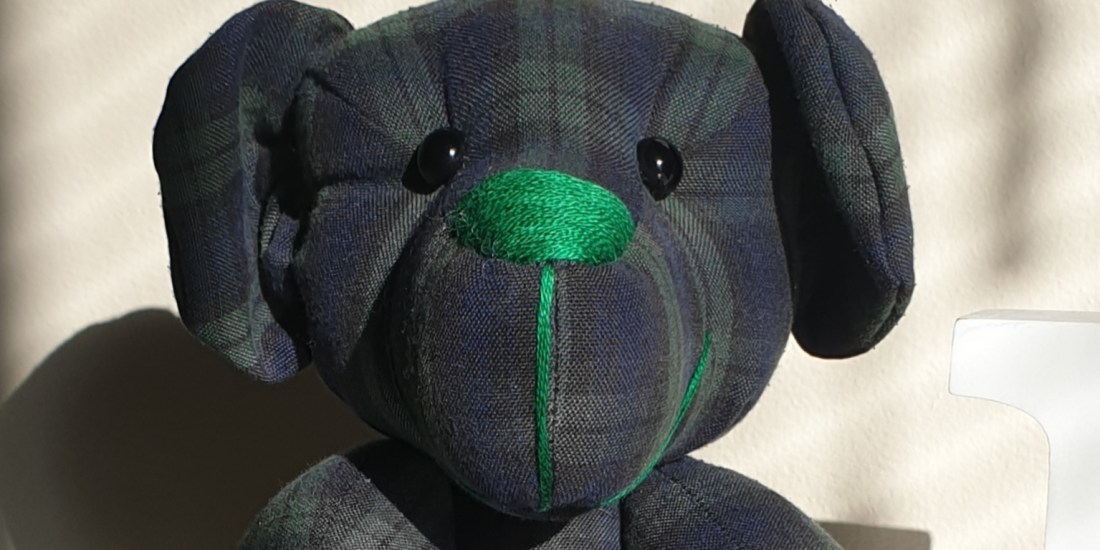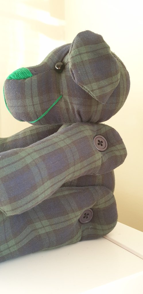 Luckily I have a friend, Kate, who I met on my travels years ago in Japan, she set up The Ribbon Rose Studio and makes memory bears and blankets along with other crafty creations, so I finally got round to sending off one of Little Miss’ old summer dresses and a bit of her house tshirt (the rest of it is in the box with the other bits!) for it to be made into a teddy bear.